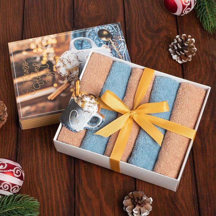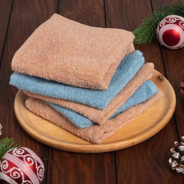 Набор махровых полотенец «Теплого Нового года» 30×30 см -5шт, 100% хл, 340гр/м2