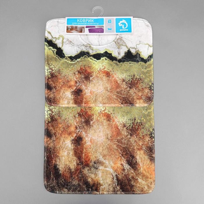 Набор ковриков для ванны и туалета Доляна «Мрамор», 2 шт: 79×50, 50×39 см, цвет коричнево-белый