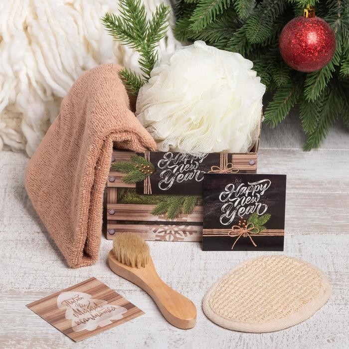 Набор подарочный Этель Happy New year полотенце 30х60см и акс (4 предм)