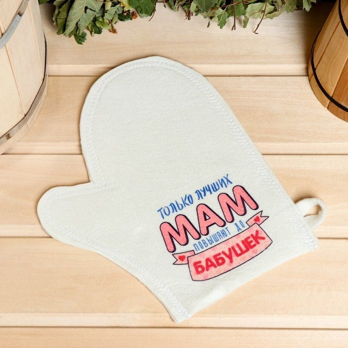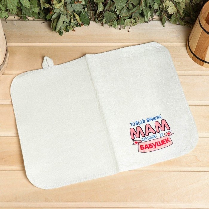 Набор для бани и сауны 5в1(сумка,шапка,варежка,коврик,мочалка),принт"Только лучших мам»,белый 543 323