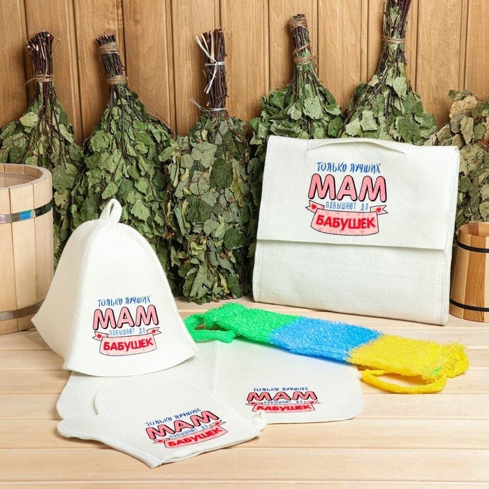 Для комфортного отдыха в парной возьмите с собой набор банных принадлежностей. Предметы из этого комплекта предохраняют тело от перегрева и являются средствами индивидуального пользования. Влажные изделия рекомендуется сушить в расправленном виде на горизонтальной поверхности. Принадлежности из войлока и фетра стирайте вручную при температуре воды 30 °C.