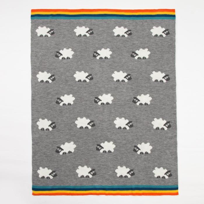 Плед вязаный Крошка Я «Овечки» цв. серый, 80*100 см, 100% хлопок