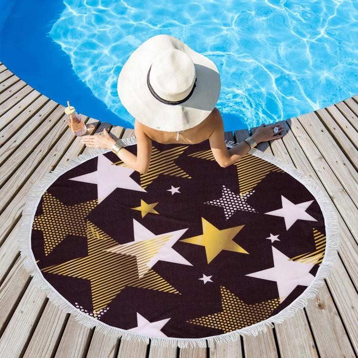 Полотенце пляжное Этель «Золотые звёзды», d 150см