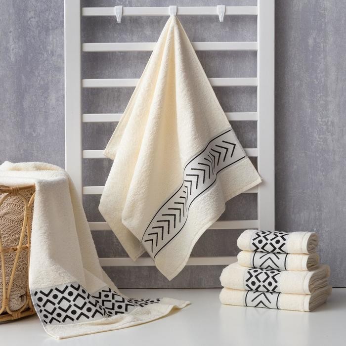 Полотенце махровое «Стрелки» молочное 50×90 см, 100% хл, 370гр/м2