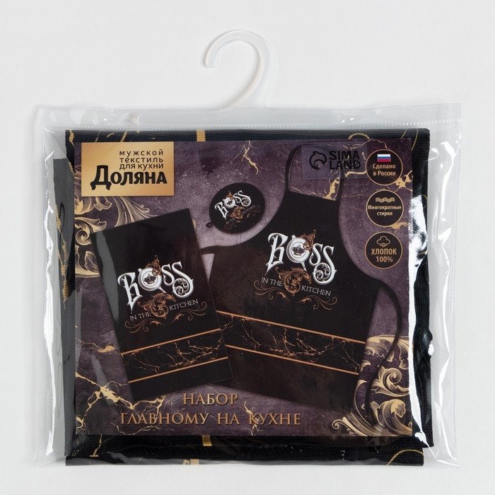 Кухонный набор Boss, фартук 70×60 см, прихватка 20×20 см, полотенце 35х60см