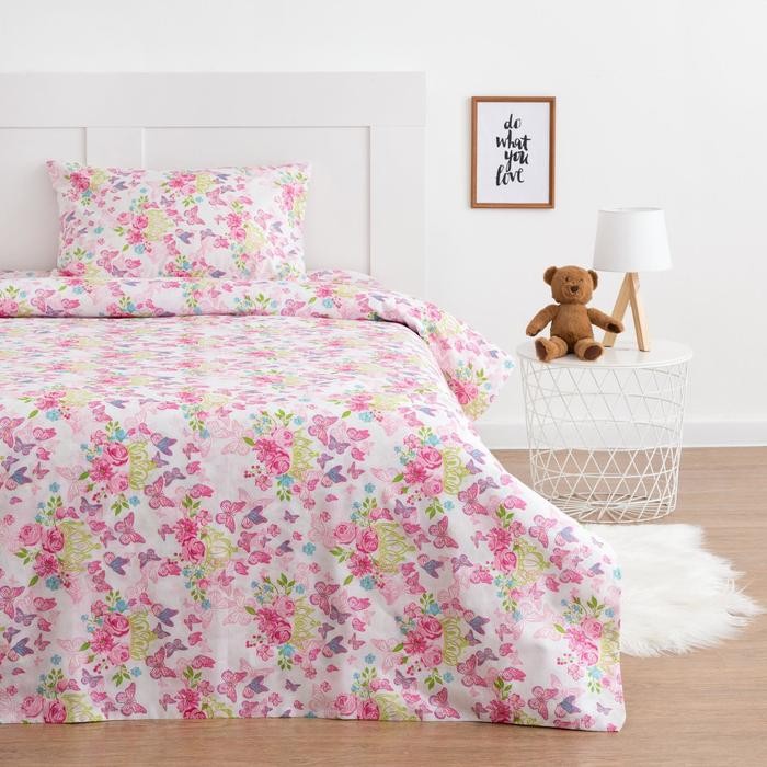 Постельное бельё 1,5 сп Экономь и Я «Нежные цветочки» 145×210, 150×210, 70×70 см-1 шт