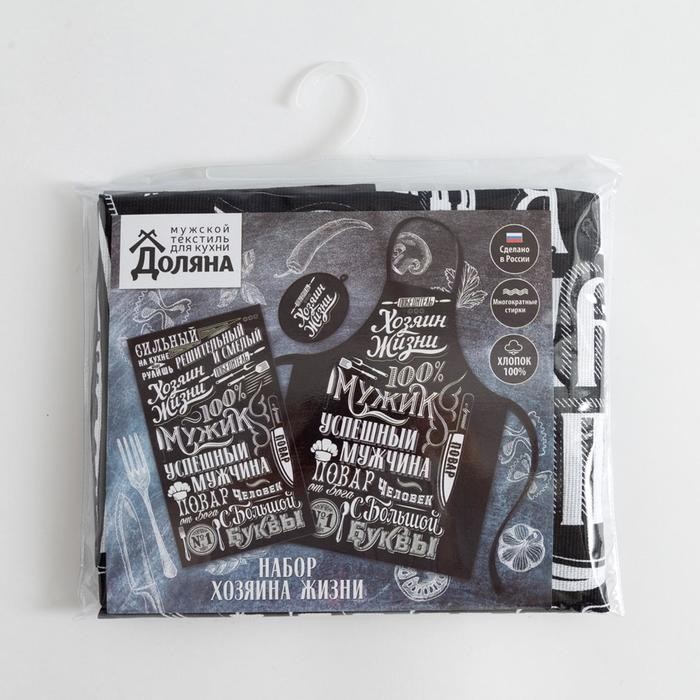 Кухонный набор (3 предмета) «100% Мужик», фартук 70×60 см, прихватка 20×20 см, полотенце35х60см