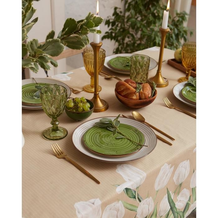 Скатерть «Этель» Белые тюльпаны 149х220см, 100% хл, саржа 190 г/м2