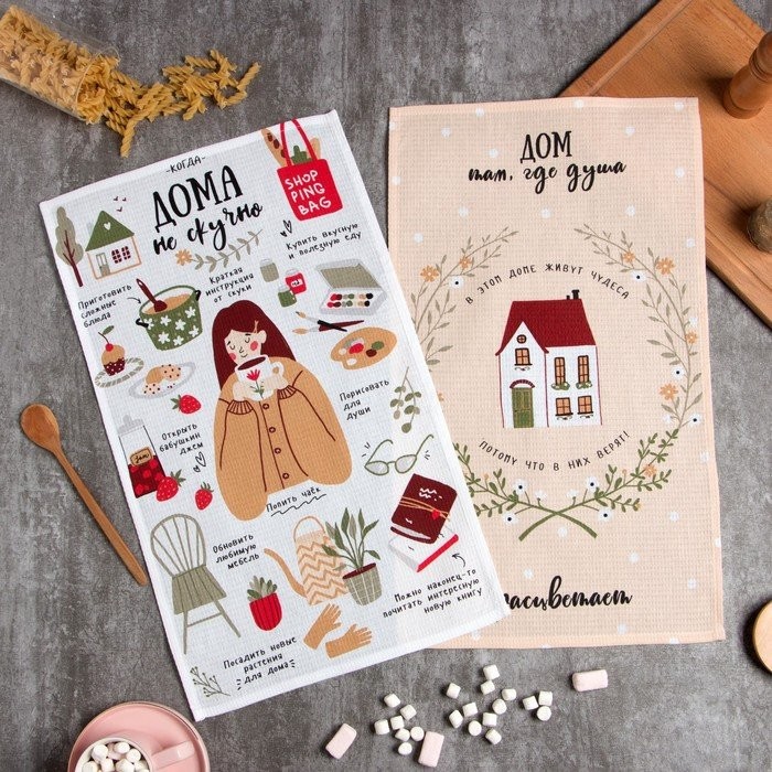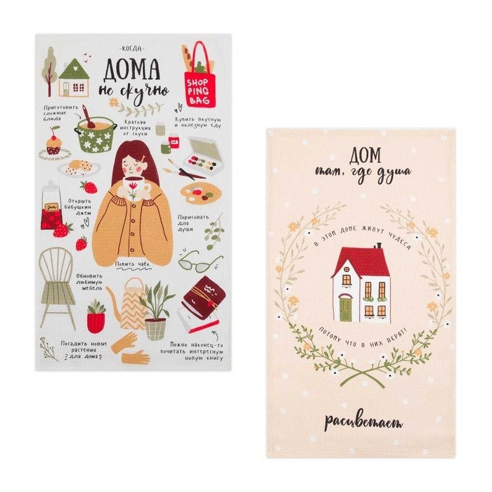 Набор кухонных полотенец Доляна «Дома не скучно» 35х60см-2шт, 100% хл