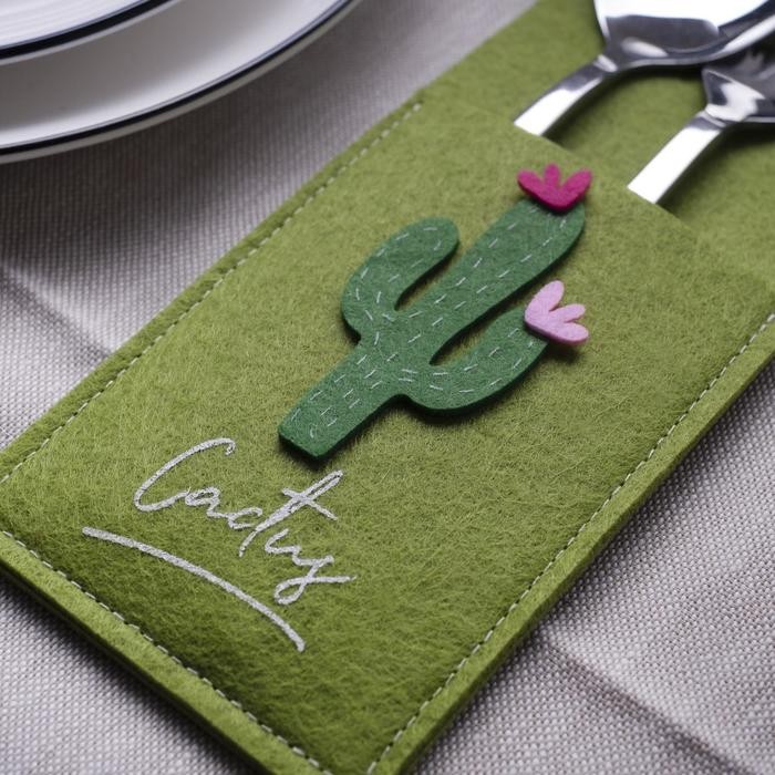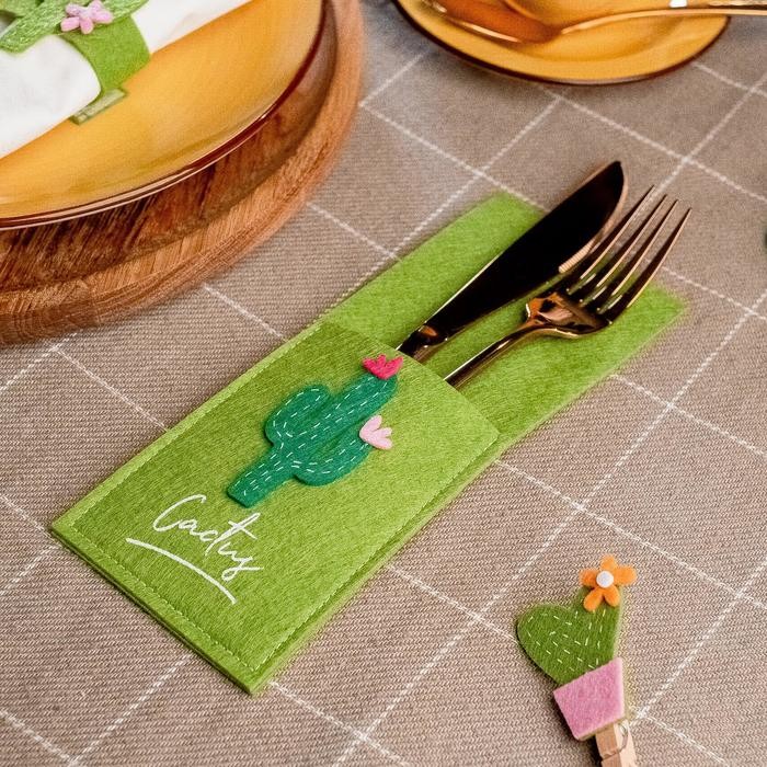 Конверт для столовых приборов «Кактусы» 8,5×22 см, 100% п/э, фетр