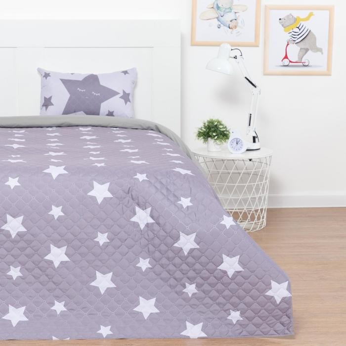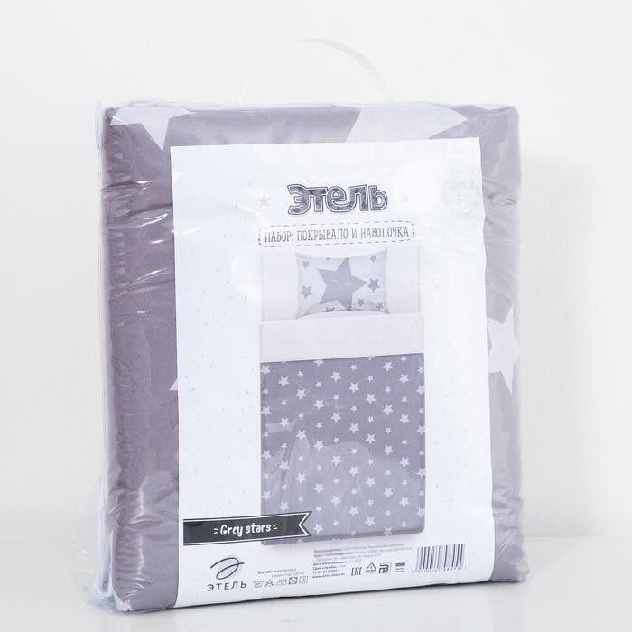 Покрывало детское и наволочка Этель 1,5 сп «Grey stars», 145×210 см, 40×60 см, микрофибра