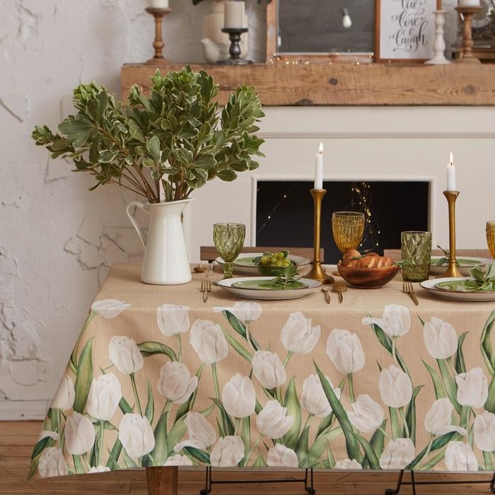 Скатерть «Этель» Белые тюльпаны 149х110см, 100% хл, саржа 190 г/м2