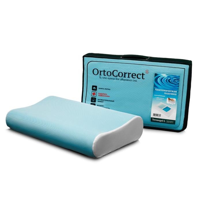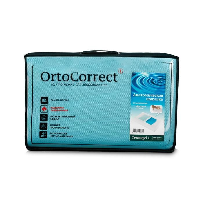 Ортопедическая подушка OrtoCorrect Termogel L, с гелевой вставкой, 58×38, валики 10/12 см