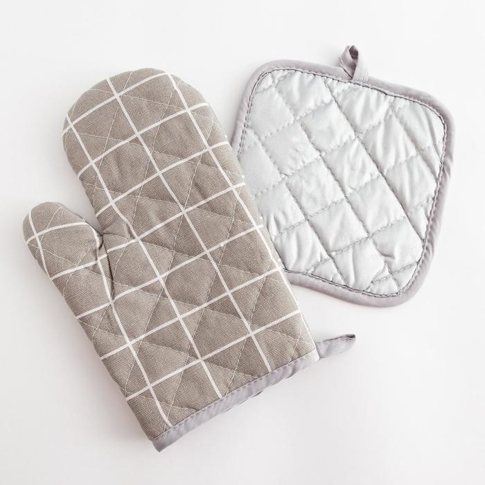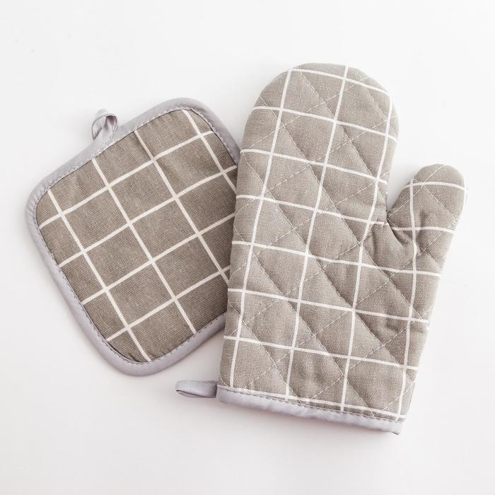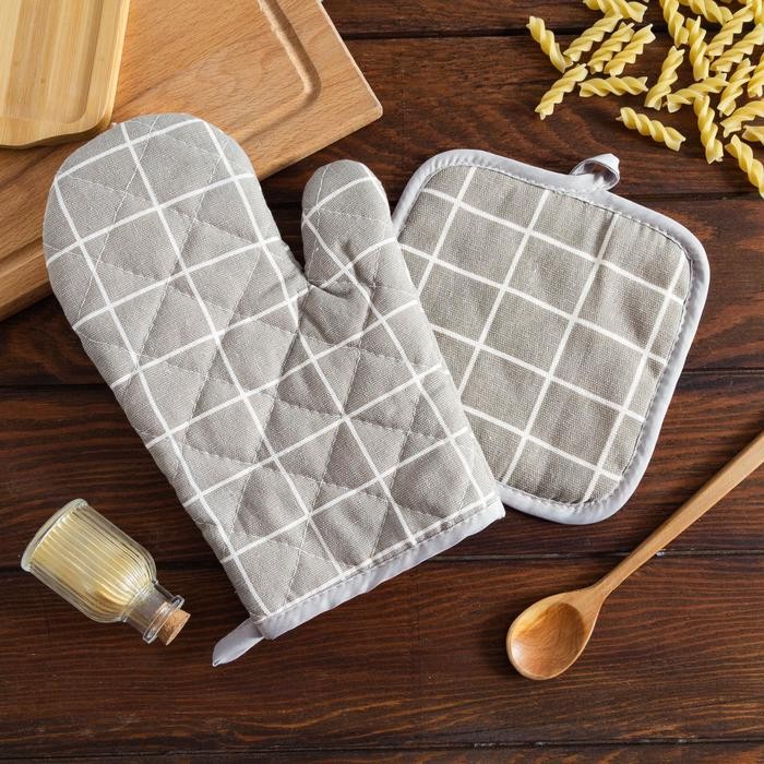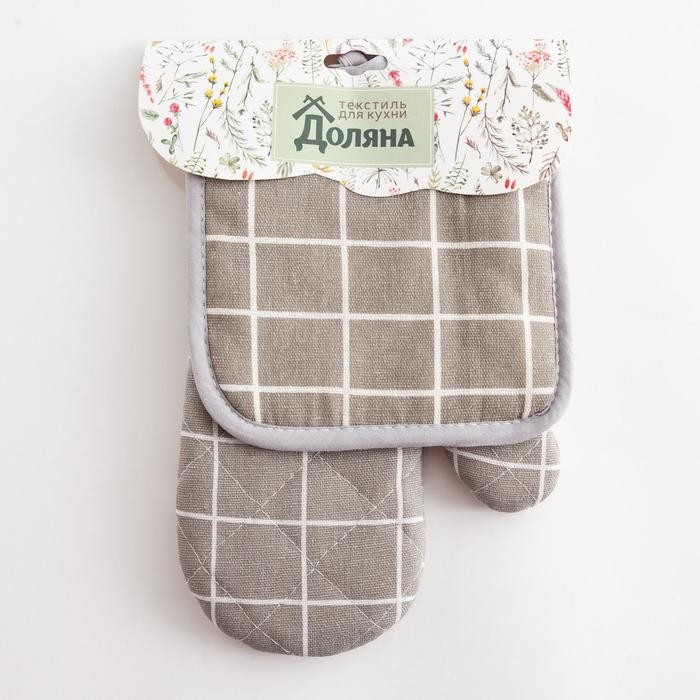 Кухонный набор Доляна «Клетка» цв.серый, прихватка 17*17 см, рукавица 26*16 см,100% п/э