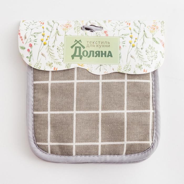 Кухонный набор Доляна «Клетка» цв.серый, прихватка 17*17 см — 2 шт,100% п/э