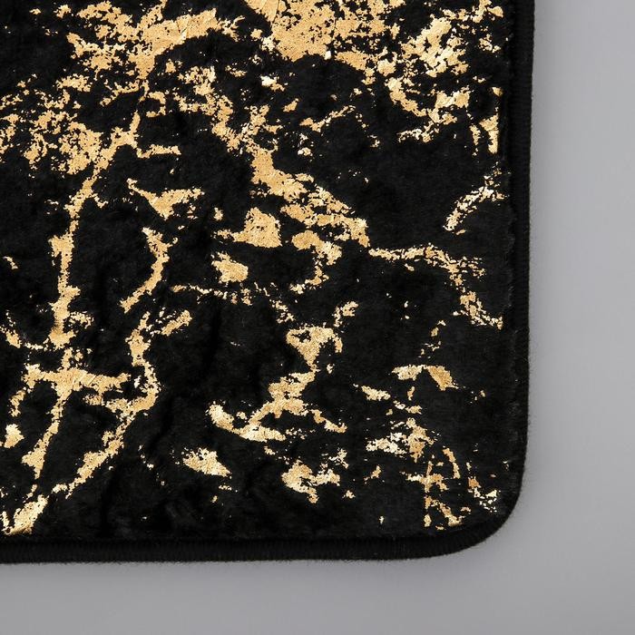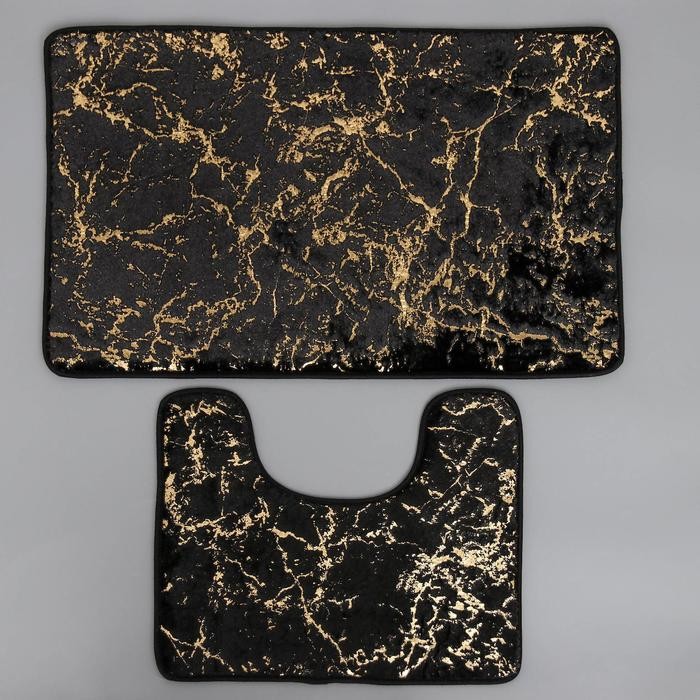 Набор ковриков для ванны и туалета Доляна «Мрамор», 2 шт: 40×50, 50×80 см, цвет чёрный