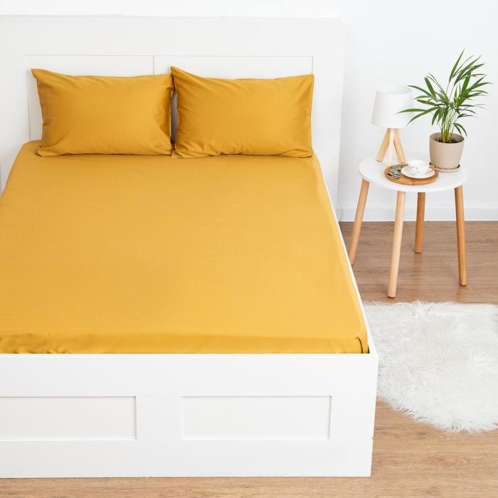 Простыня на резинке Этель 200*220*25 см, цв.горчичный, 100% хлопок, мако-сатин, 125 г/м²
