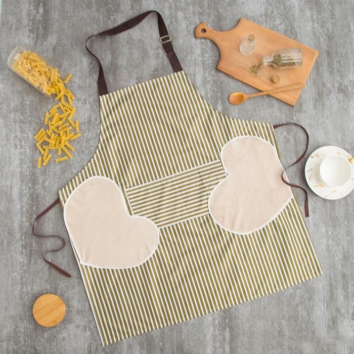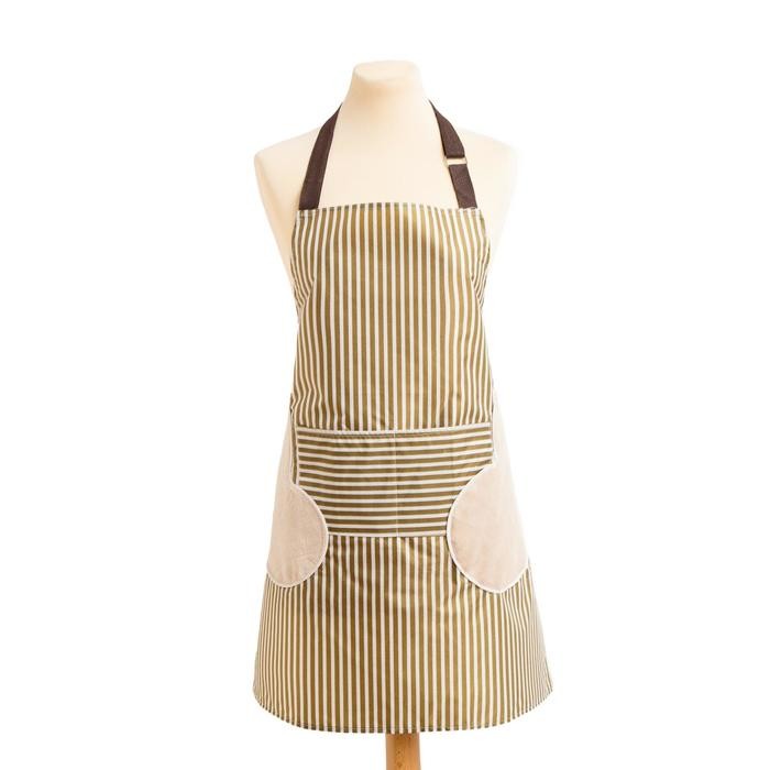 Фартук Доляна с карманами в полоску цв.зеленый, 70*65 см, 100% п/э