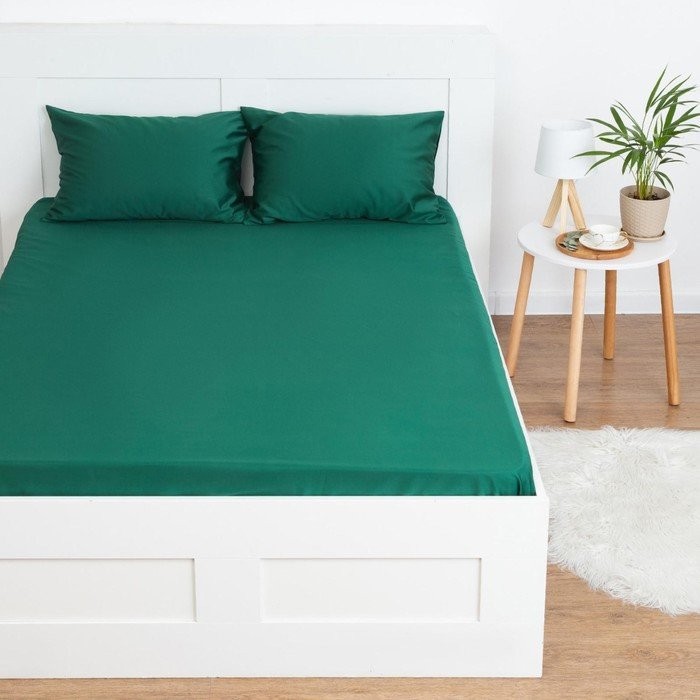 Простыня на резинке Этель 180*200*25 см, цв.изумрудный, 100% хлопок, мако-сатин, 125 г/м²