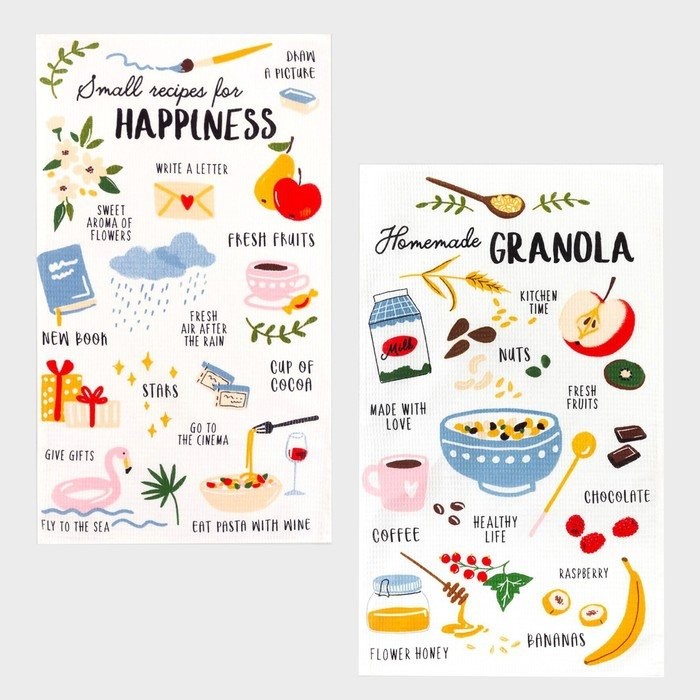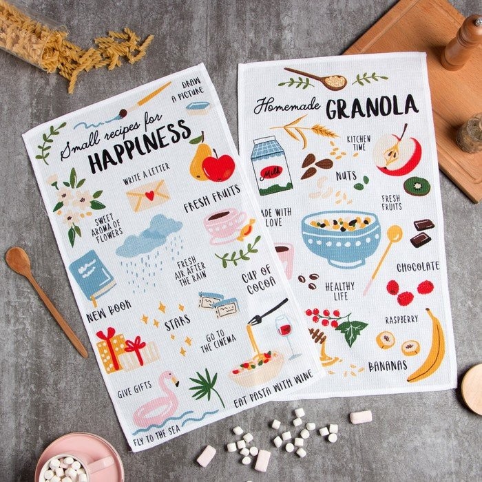 Набор кухонных полотенец Доляна «Рецепты счастья», 35х60см-2шт, 100% хл