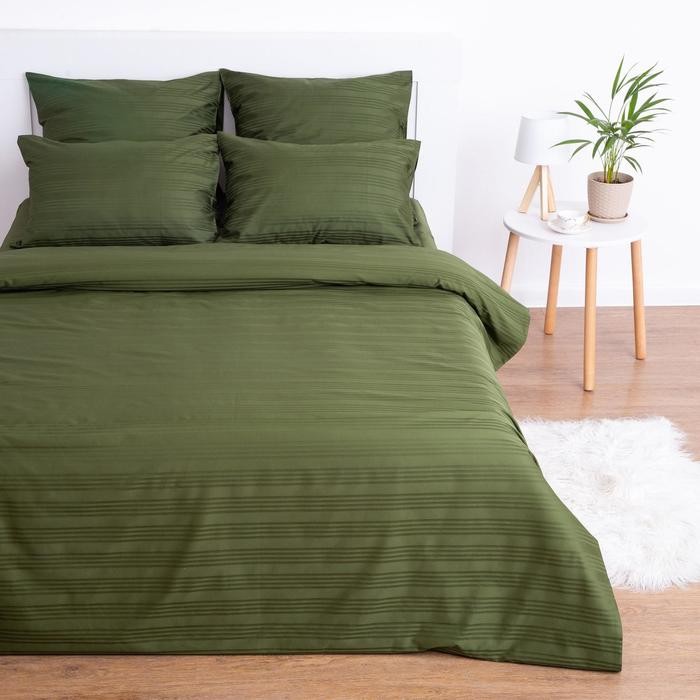 Материал наволочек и пододеяльника: страйп-сатин. Материал простыни: мако-сатин.