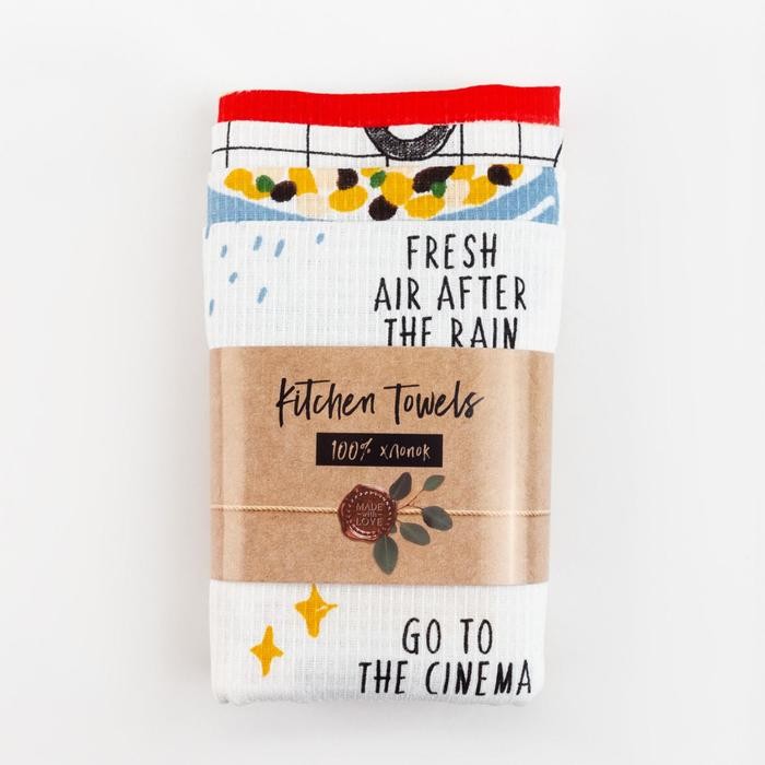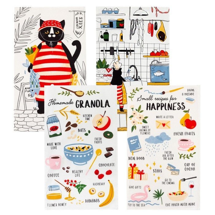 Набор кухонных полотенец Доляна Happiness, 35х60см-4шт, 100% хл