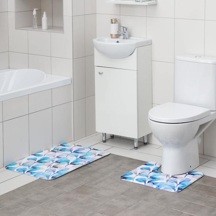 Набор ковриков для ванны и туалета Доляна «Шелла», 2 шт: 45×70, 39×45 см, цвет бело-синий