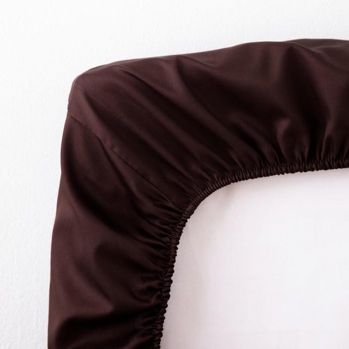 Простыня на резинке Этель 200*220*25 см, цв.темно-коричневый, 100% хлопок, мако-сатин, 125 г/м² 5373