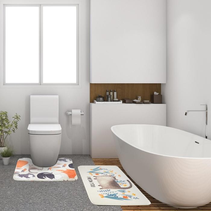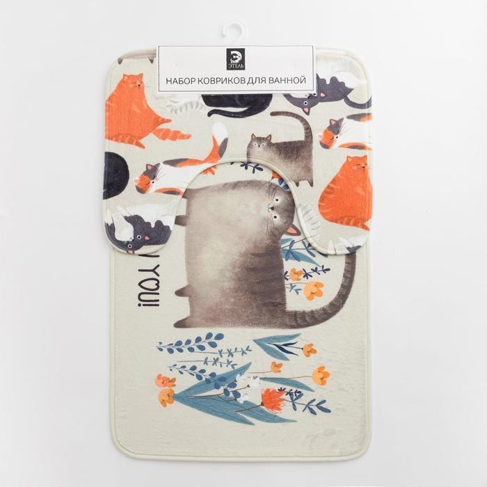 Набор ковриков для ванной Этель «Котики» 2 шт, 80×50 см, 50×40 см, велюр