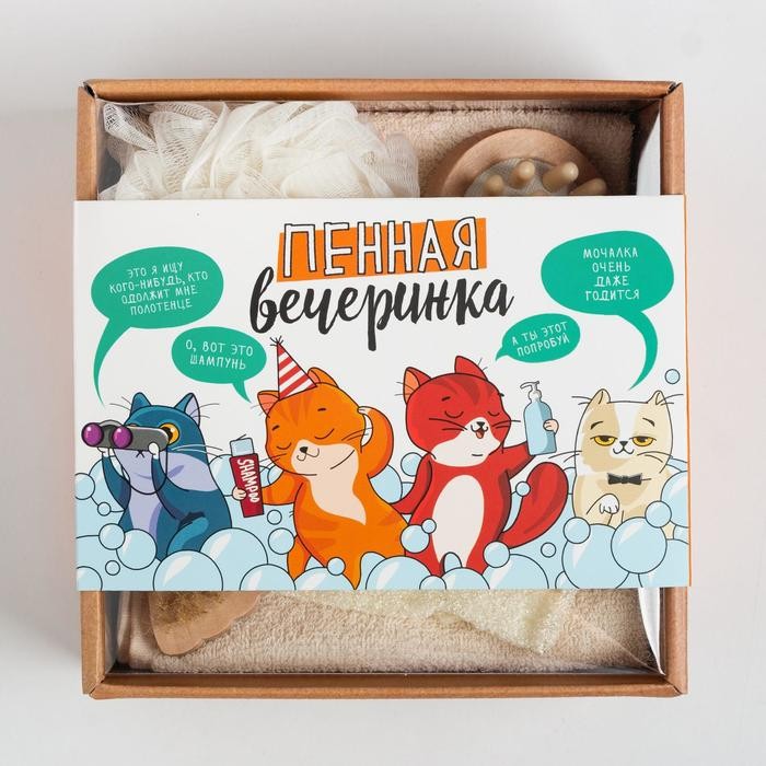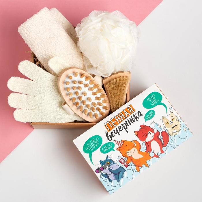 Подарочный набор «Пенная вечеринка» полотенце 30×60 см и банные акс.