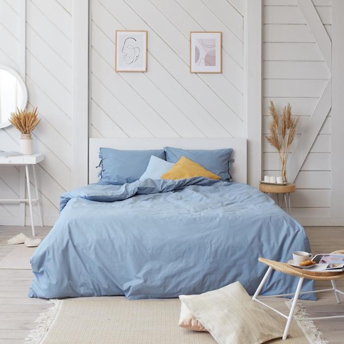 Постельное белье евро «Небесный» отлично подойдёт для спальни в стиле: минимализм и современный.